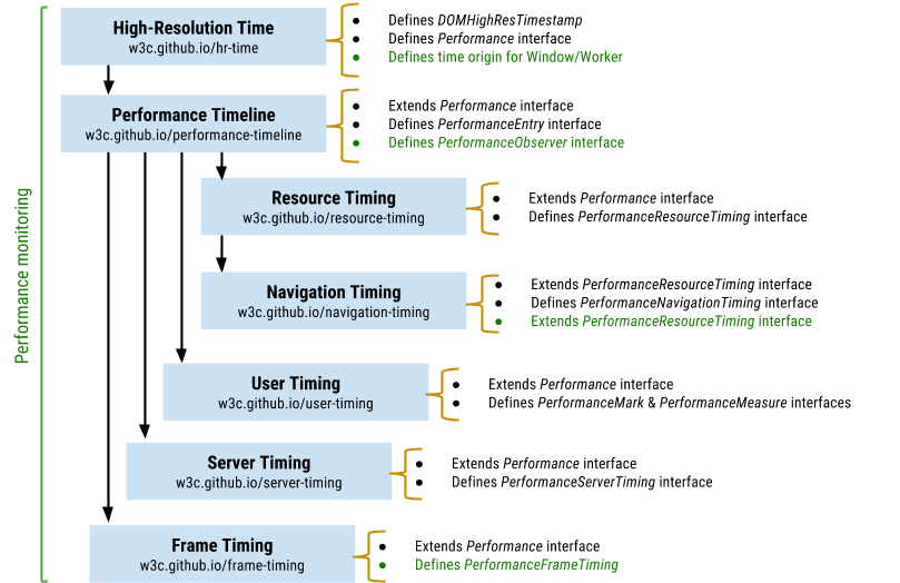 Web 标准提供性能相关的 API 及继承关系如下图:
