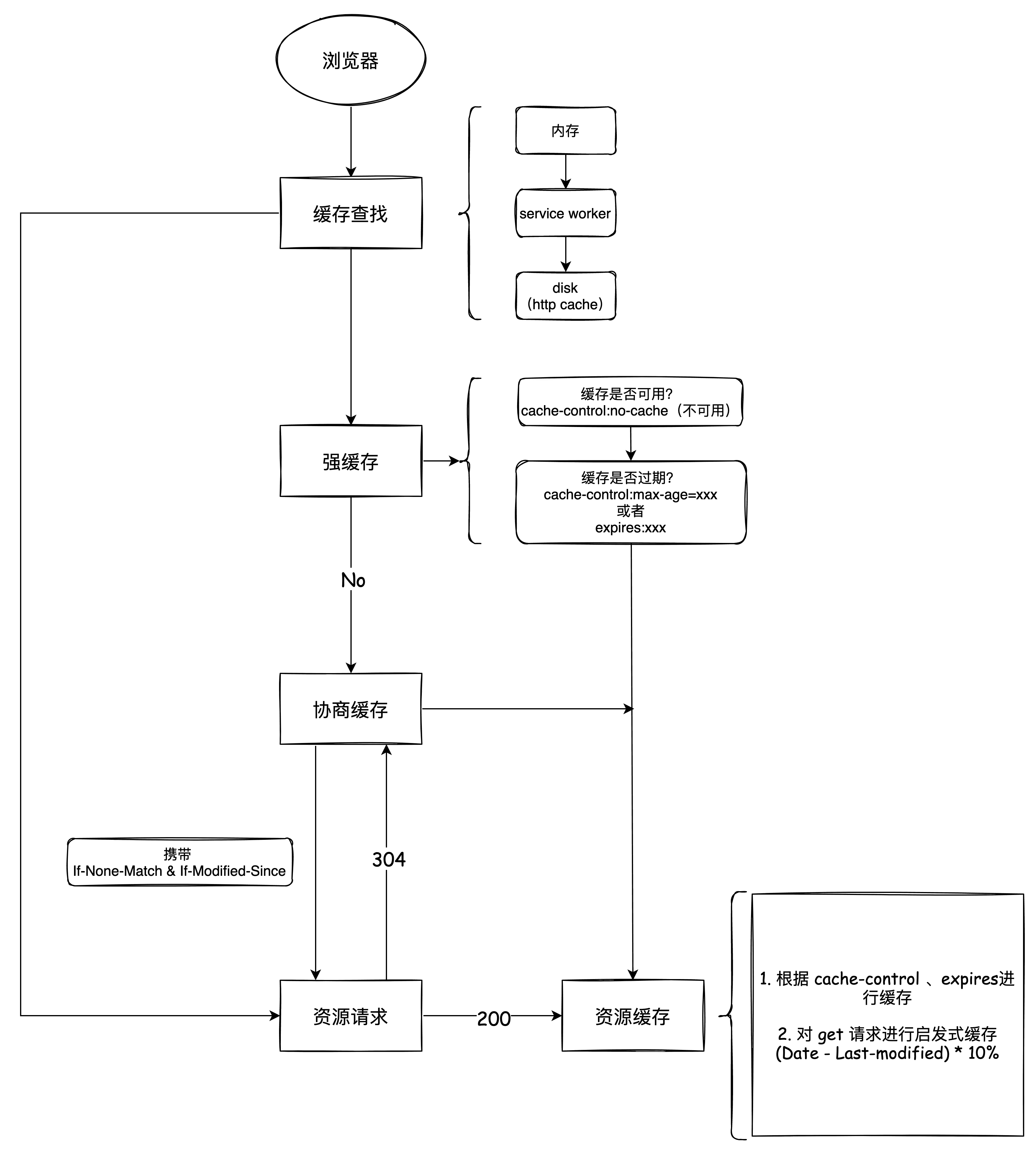 - 强制缓存:通过 Expires 和 Cache-Control 判断缓存是否有效,如果可用则直接使用,否则协商缓存