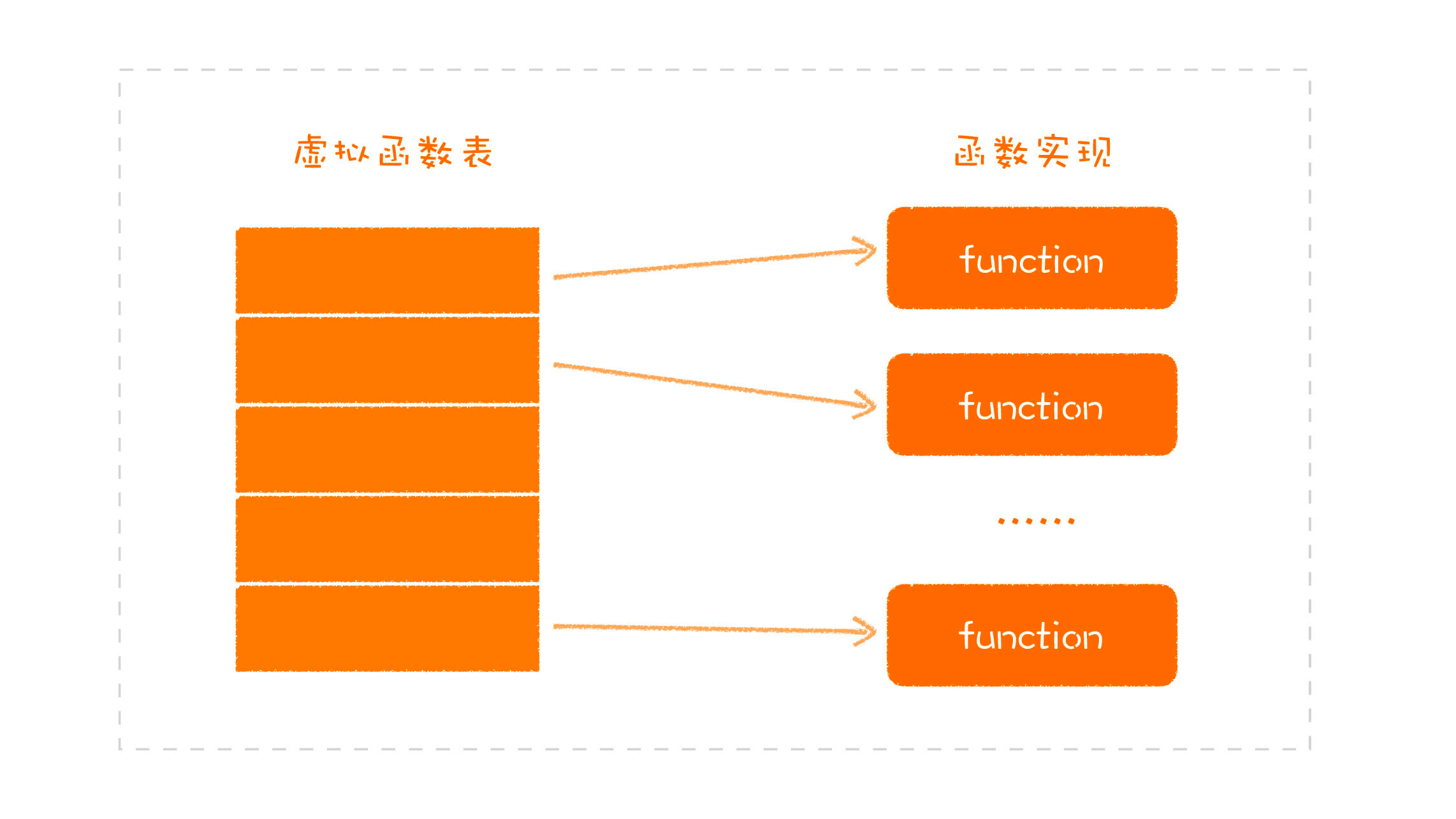 接口实现的函数在虚拟函数表中找到一个位置,把函数指针地址写进去,不同的子类对应不同的虚拟表。当我们用接口去调用对应的函数时,实际上完成的就是在对应的虚拟函数表的一个偏移,不管现在面对的是哪个子类,都可以找到相应的实现函数: