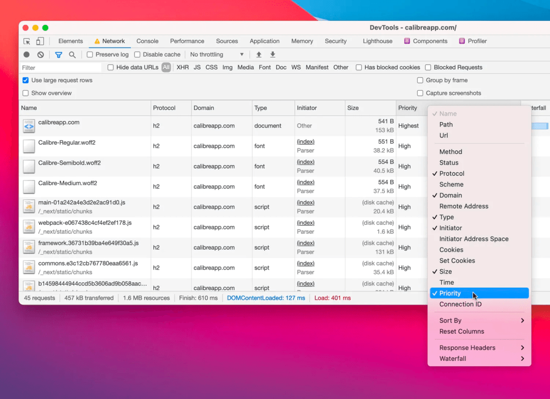可通过 Chrome NetWork 面板查看 Priority 列。