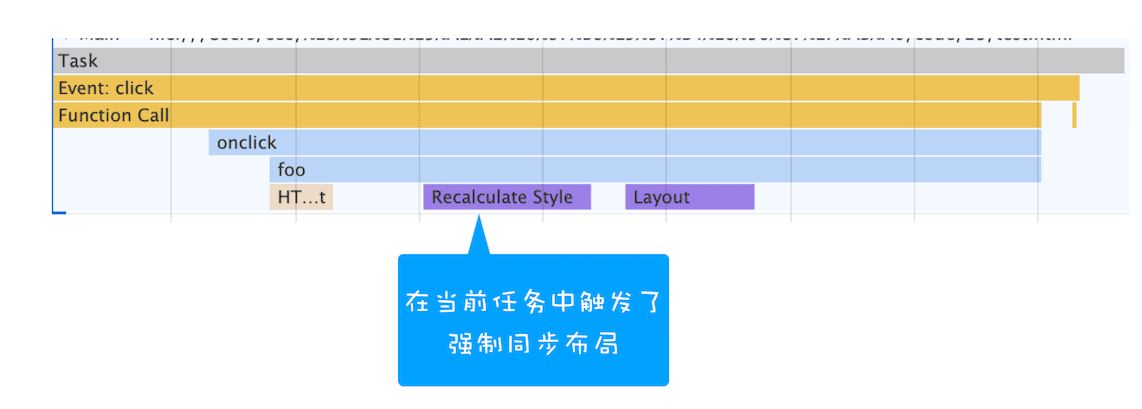 所谓强制同步布局,是指 JavaScript 强制将计算样式和布局操作提前到当前的任务中。