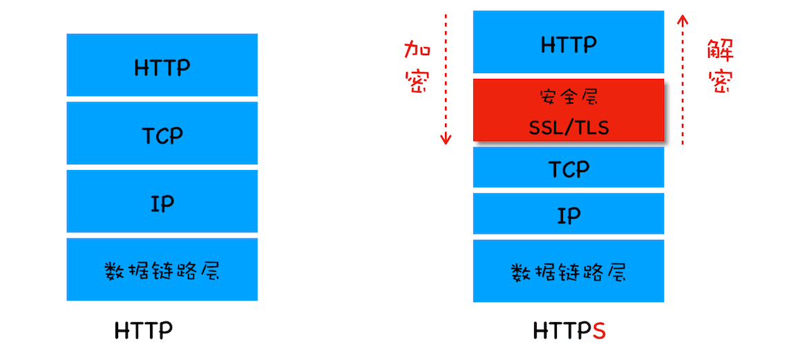 - 在 HTTP 协议栈中引入安全协议层(对发起 HTTP 请求的数据进行加密操作和对接收到 HTTP 的内容进行解密操作)