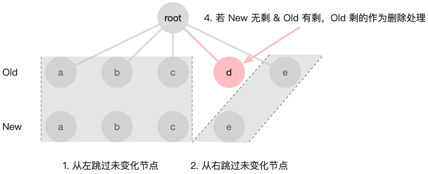 // 所有新的节点都已经被处理完了,那么剩余的旧节点则统统删除