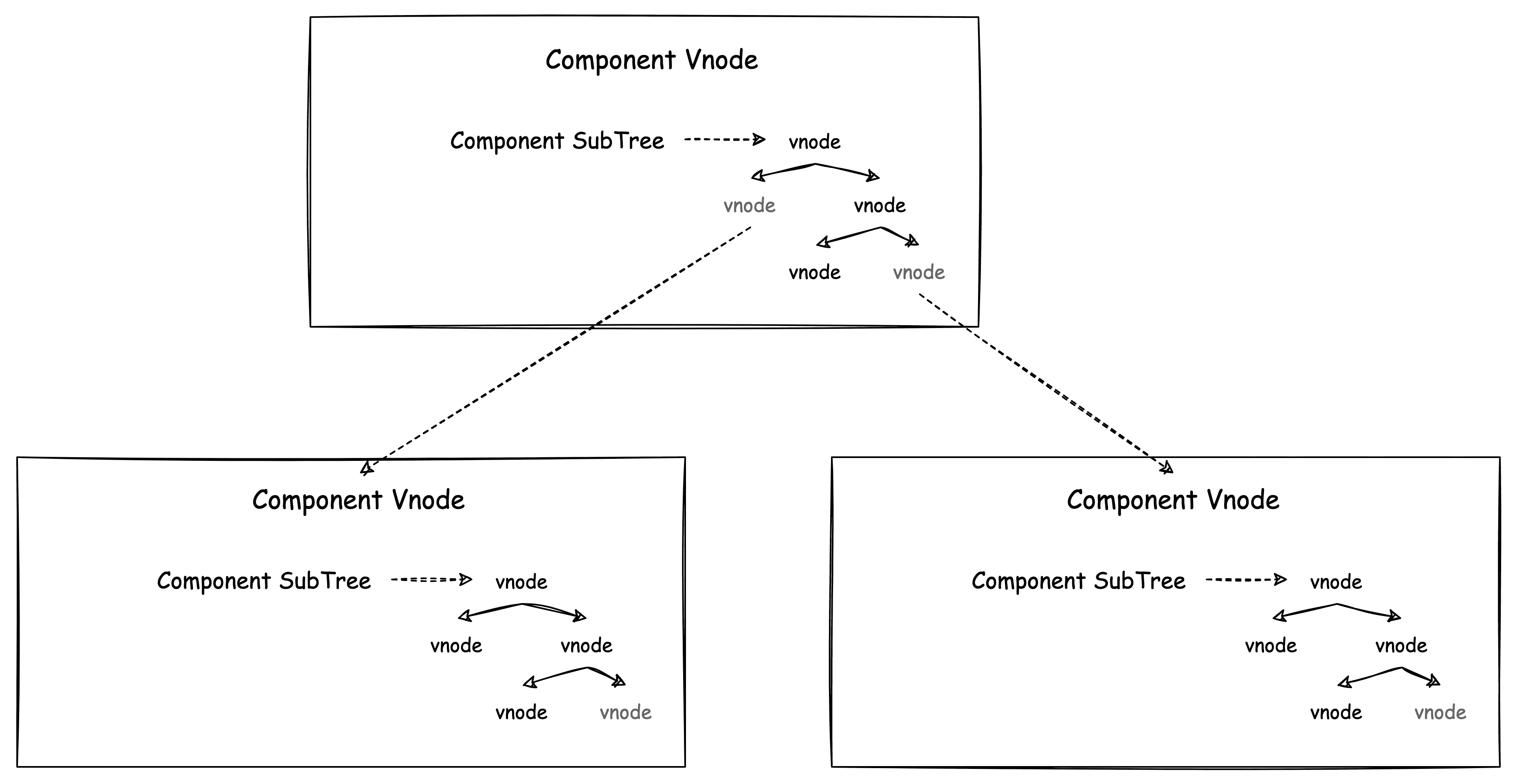 在 Vue 中,页面是由组件构成的树形结构,整个组件树的 vnode tree 结构如下: