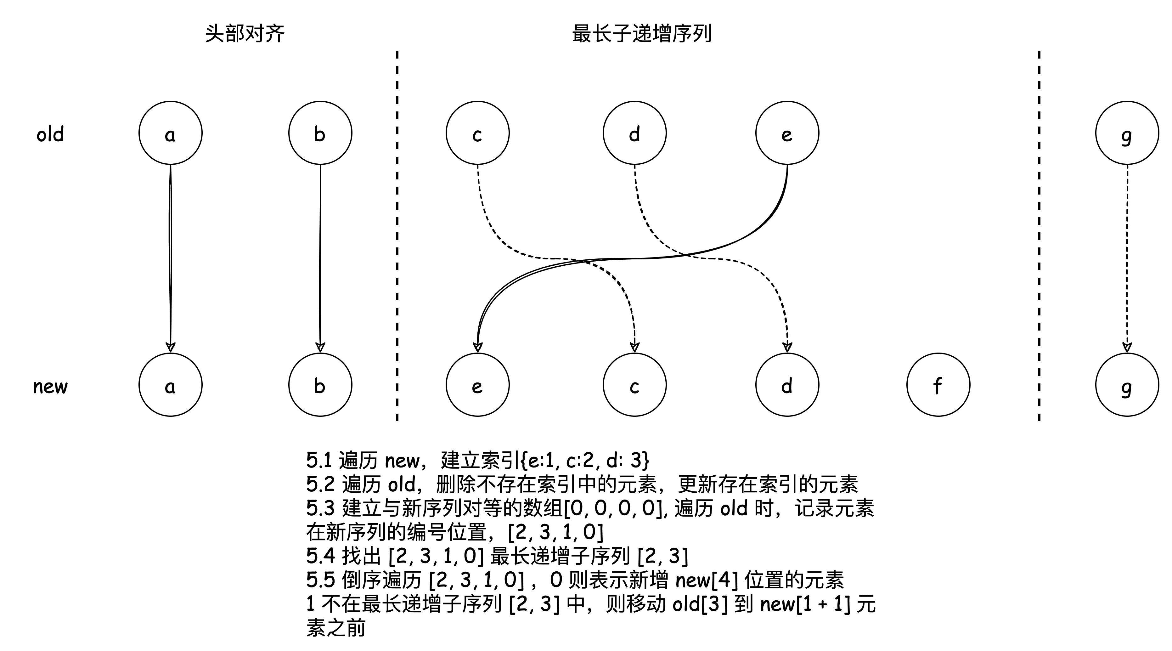 // 前面删除更新旧节点,接下来需要对旧节点移动调整位置和新增新节点
