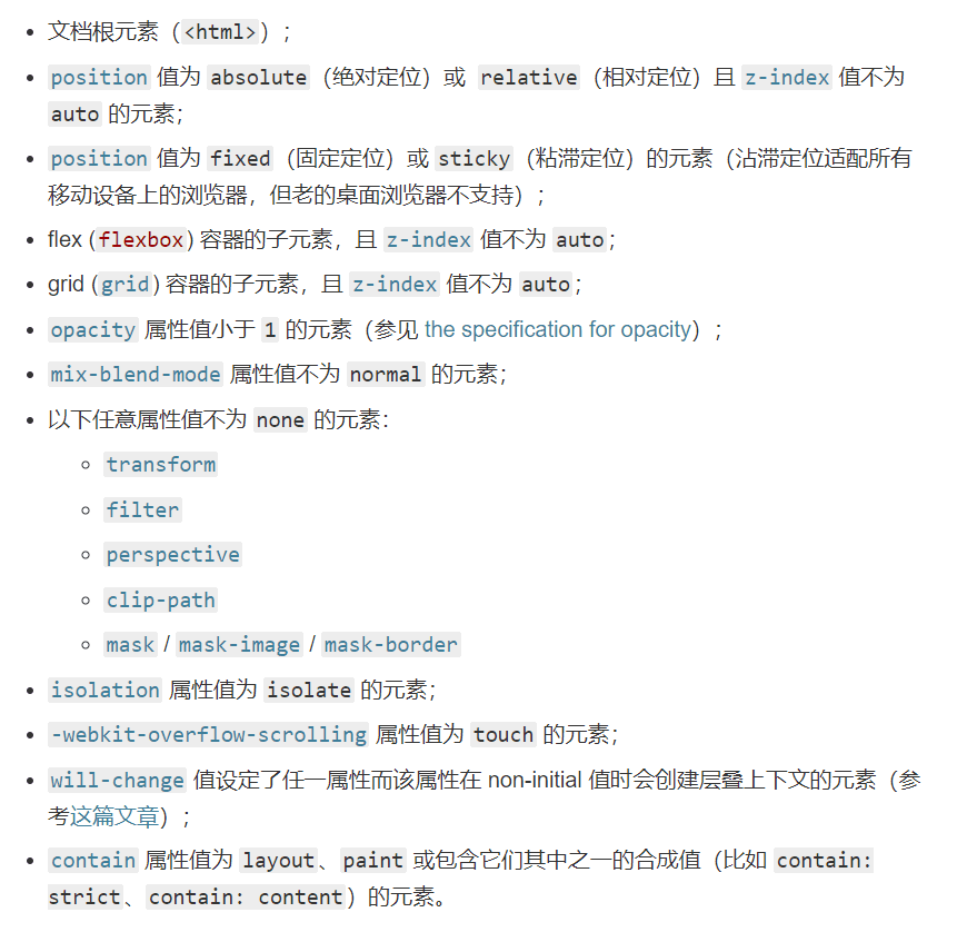 要能成为图层的节点除了要满足层叠上下文属性条件,还需要具有以下条件: